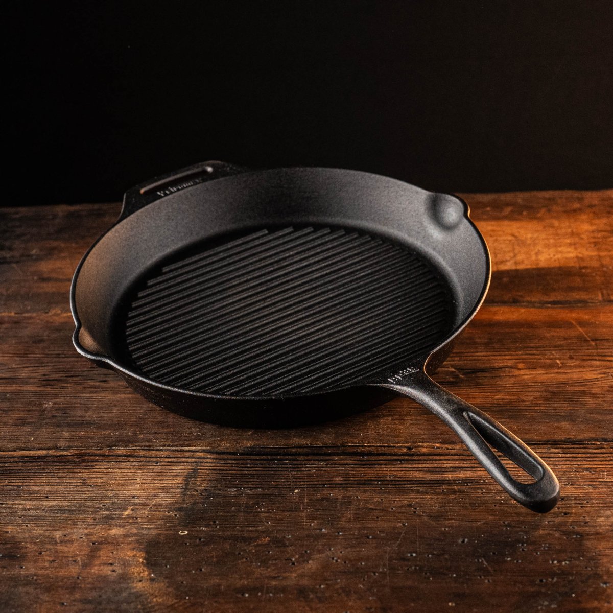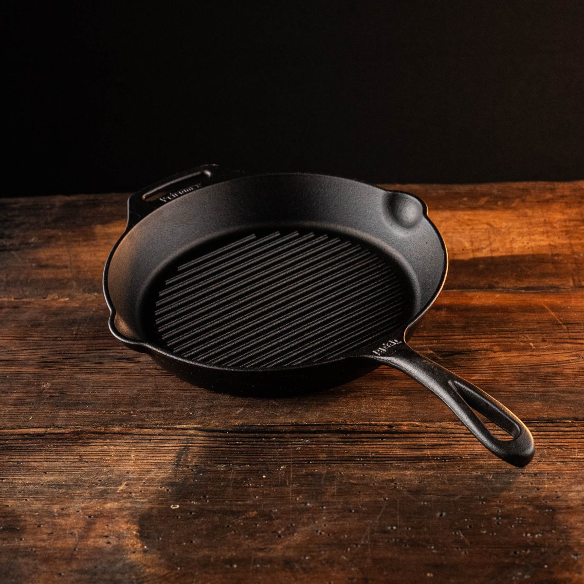 De Petromax Grill & Fire Skillet met handvat is een veelzijdige gietijzeren pan ideaal voor buiten koken of binnen op het vuur. Hij is beschikbaar in twee varianten: ø 30 cm en ø 35 cm, beide met lang handvat én tweede oppakhandvat aan de overzijde. De fijn geribbelde bodem zorgt voor perfecte grillstrepen en smaken, terwijl overtollig vet wegloopt en je gerecht extra krokant wordt dankzij de natuurlijke patina. Gebruik hem op inductie, gas, open vuur of in de oven — meerlaagse warmteopslag voor langere bereiding & direct serveren. Na gebruik eenvoudig schoon te maken, de patina wordt alleen maar sterker.