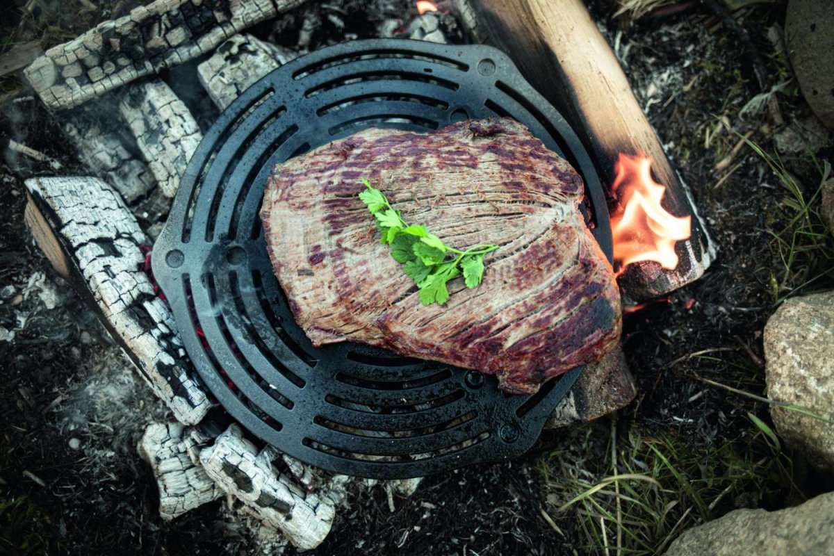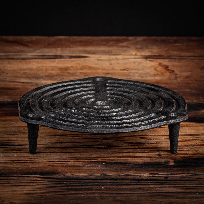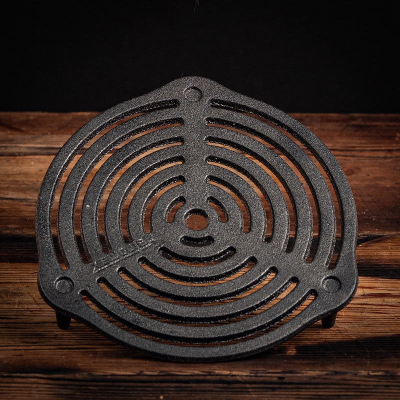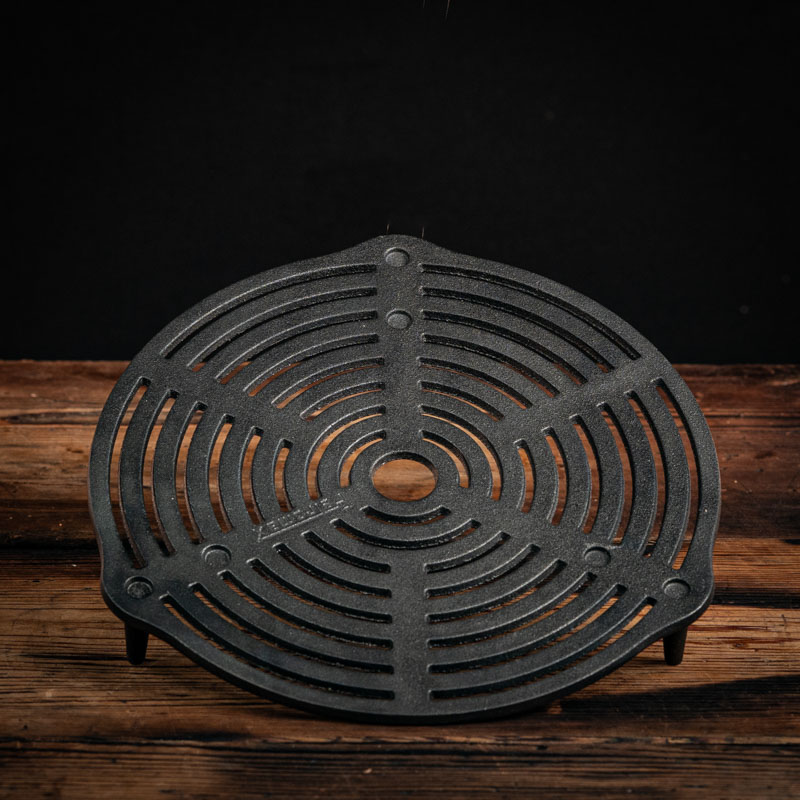 Omdat alle Petromax-producten vooraf zijn ingebrand (seasoned), kun je deze onderzetter meteen in gebruik nemen. En hij is multifunctioneel: gebruik hem als los grillrooster rechtstreeks in het vuur. Vlees, vis of groente — alles krijgt die kenmerkende grillstrepen dankzij het robuuste gietijzer. Staat ‘ie toch al in het vuur? Dan kun je er ook perfect een percolator of kleine Dutch Oven bovenop zetten.