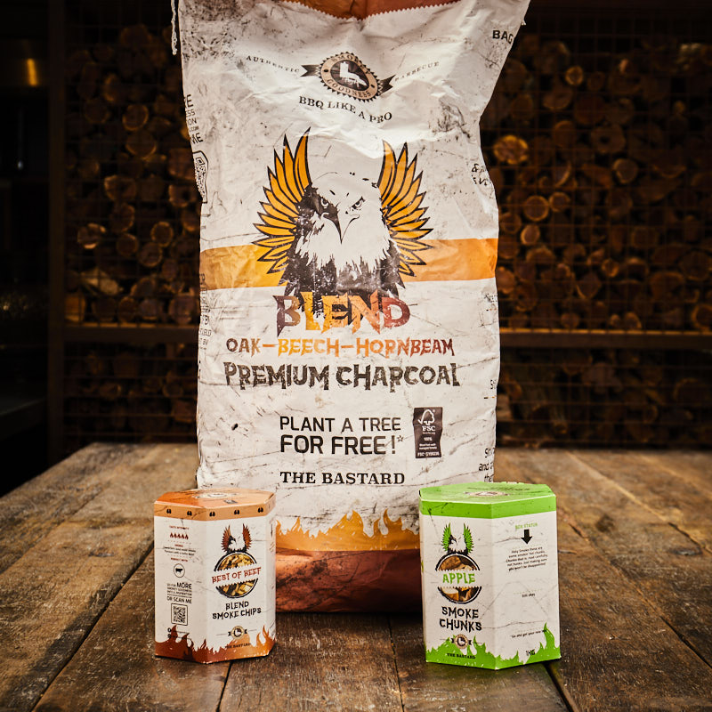 10kg Smokey Goodness houtskool, een doos hout chunks en een doosje rook chips. Voeg wat vuur toe en een mooi stukje vlees en je avond kan niet meer stuk. Nu nog bedenken wat er op de barbecue komt te liggen!