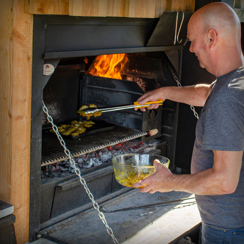 Het basisprincipe van alle braai modellen van Home Fires is gelijk. In het midden of aan de zijkant van de braai staat de kolenmaker waarin het vuur wordt gestookt. Nadat je vuur al even brand kun je met de (meegeleverde) pook in het vuur porren waardoor de sintels/kolen er onderdoor vallen. Deze kolen schuif je vervolgens onder de roosters van de braai. Wanneer je constant hout toegevoegd aan de kolenmaker ben je verzekerd van een aanvoer van nieuwe kolen. Deze eigen gemaakte kolen zorgen voor een heerlijke smaak aan je gerechten. De Home Fires Built-in Supreme de luxe 1000 kan daarnaast voorzien worden van diverse additionele handigheden zoals: broodoven, draaiend spit, gietijzeren potje (potjie). De verhoogde lades van de braai kunnen gebruikt worden als oven om bijvoorbeeld brood in af te bakken.