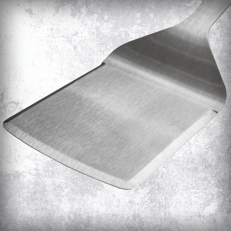 Dit is niet alleen een hele fijne spatel omdat ie zo lang is, maar ook omdat de zijkanten scherp zijn. Heel handig om jouw vlees of groente even een tikkie te geven, zodat het door de helft is. Perfect voor de dagelijkse grillsessie.